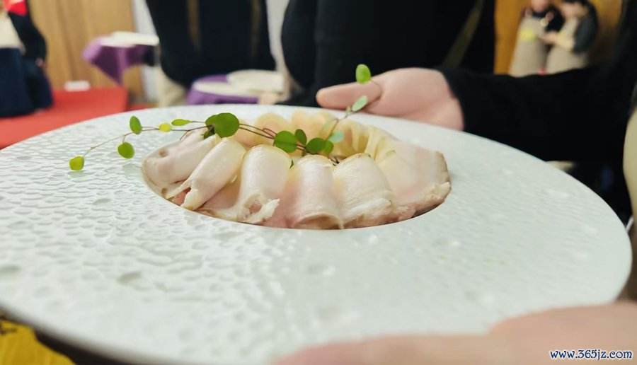 大厨现场烹制净水白切梅山猪五花肉。(图片开始:束涵 摄)